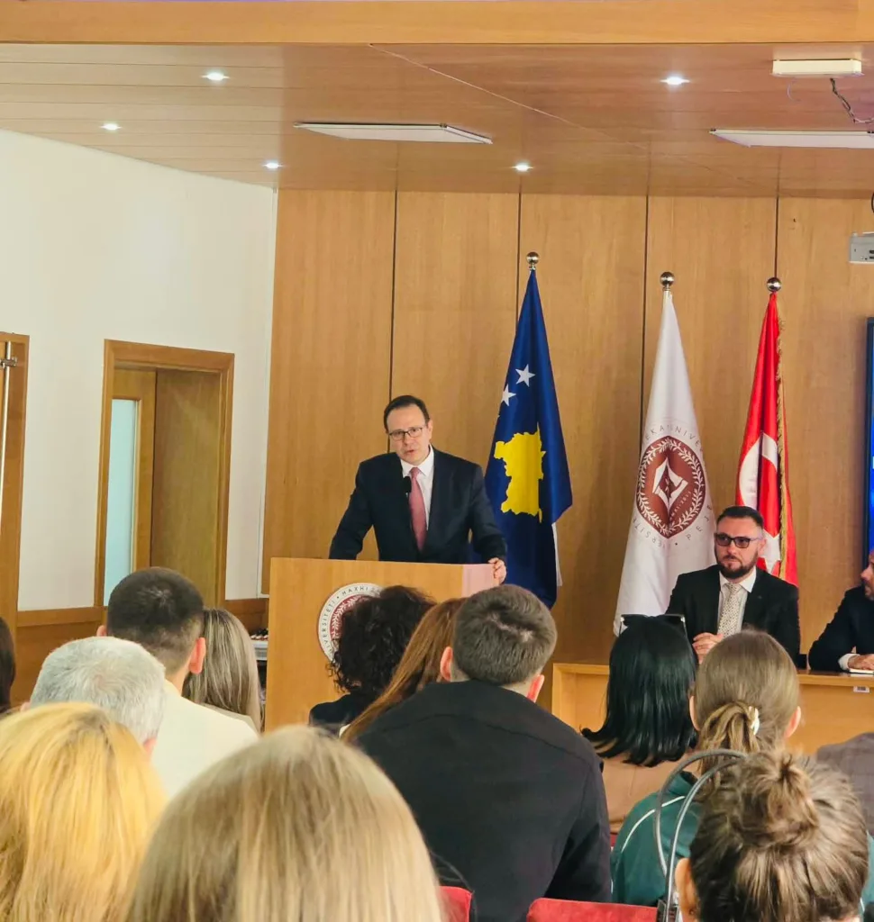 Ligjërata u hap nga Prodekani i Fakultetit Juridik, Prof. Ass. Dr. Mensur Morina, i cili në fjalën e tij përshëndetëse i uroi mirëseardhje Ambasadorit dhe vlerësoi lart rëndësinë e kësaj vizite për avancimin e bashkëpunimit akademik dhe institucional. Ai theksoi rolin e diplomacisë akademike në ndërtimin e urave të qëndrueshme ndërmjet institucioneve të arsimit të lartë dhe partnerëve ndërkombëtarë.