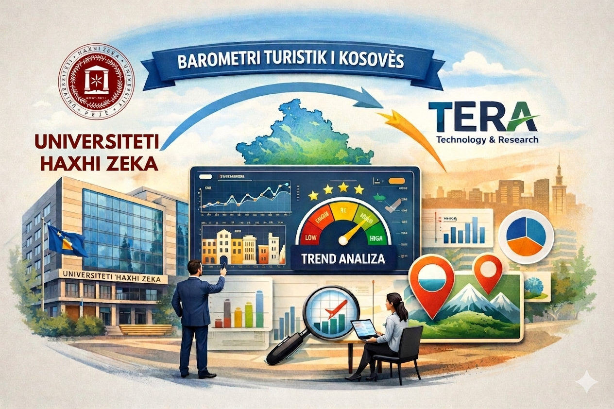 Në një kohë kur universitetet përballen me sfidën për të kaluar nga roli tradicional i transmetuesit të dijes në një aktor aktiv të zhvillimit ekonomik dhe shoqëror, Universiteti “Haxhi Zeka” po dëshmon se transformimi drejt modelit të Universitetit 4.0 nuk është vetëm një koncept teorik, por një realitet i prekshëm dhe i matshëm. Një nga dëshmitë më të fuqishme të këtij transformimi është lansimi dhe funksionalizimi i Barometrit Turistik të Kosovës, një projekt inovativ i zhvilluar në bashkëpunim dhe udhëheqja me Blerim Gjeladinin president i kompanisë TERRA.