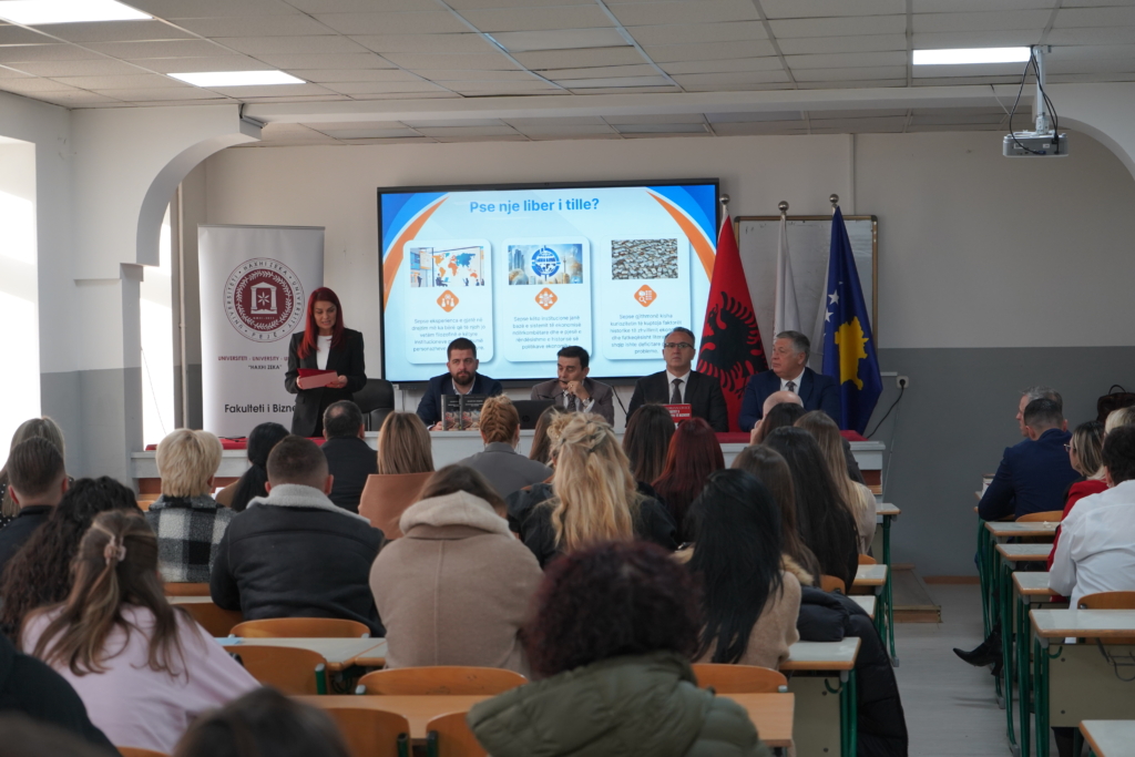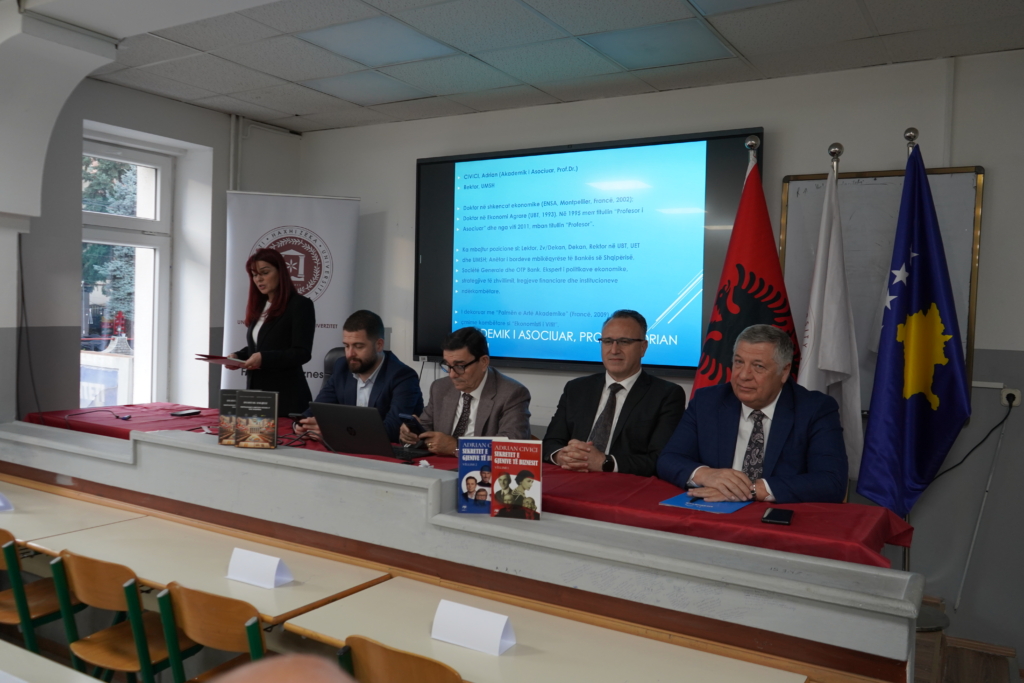 Në ambientet e Fakultetit të Biznesit të Universitetit “Haxhi Zeka” u mbajt sot promovimi i librave më të rinj të dy profesorëve të shquar shqiptarë, duke e kthyer këtë aktivitet në një moment të veçantë akademik dhe kulturor për institucionin. Prof. Dr. Anastas Angjeli prezantoi veprën e tij “Institucionet e Bretton Woods dhe Shqipëria”, një analizë të thelluar mbi arkitekturën financiare ndërkombëtare dhe ndikimin e saj historik e bashkëkohor në zhvillimin ekonomik të vendit. Ndërkaq, Prof. Dr. Adrian Civici promovoi librin “Sekretet e Gjenive të Biznesit”, vëllimi I dhe II, ku trajtohen modele suksesi, praktika inspiruese dhe përvoja të biznesit modern. Të dy veprat përfaqësojnë kontribute të vyera në literaturën ekonomike dhe në fushën e politikave zhvillimore.