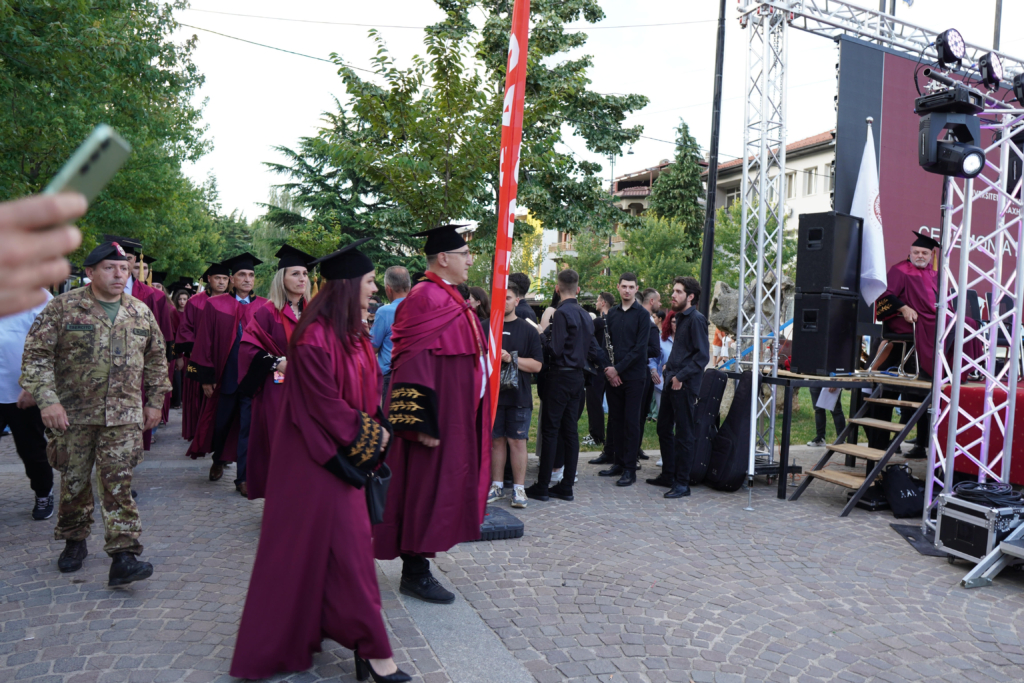 Pjesëmarrja ishte mbresëlënëse: përveç studentëve dhe stafit të Universitetit, të pranishëm ishin prindër, të afërm, qytetarë nga Peja dhe më gjerë, duke e kthyer këtë ceremoni në një festë të përbashkët të komunitetit. Një risi e këtij viti ishte pjesëmarrja e KFOR-it Italian, duke reflektuar marrëdhëniet gjithnjë në zgjerim dhe fillimin e bashkëpunimeve konkrete. Performanca e ansamblit muzikor “La Fanfara” shtoi hijeshi dhe emocione në këtë ngjarje të veçantë.