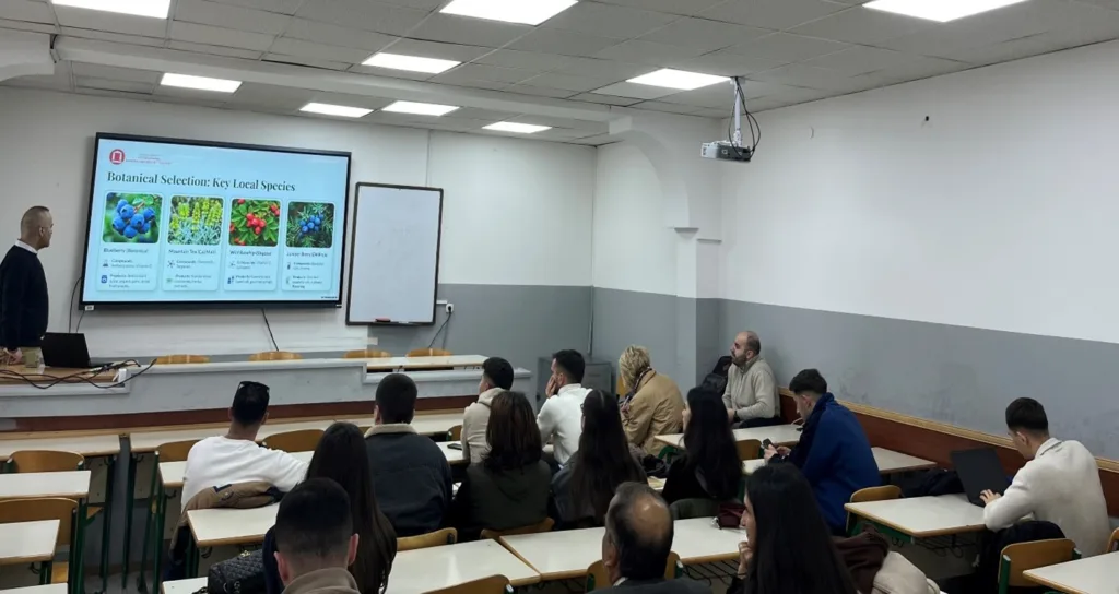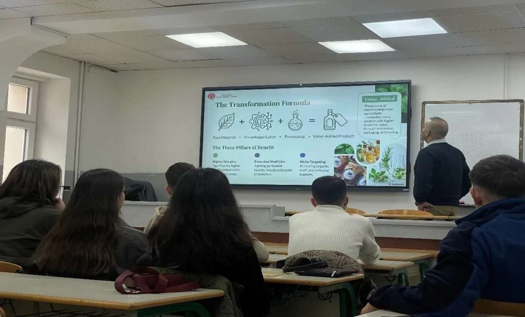 Ligjërata u karakterizua nga përmbajtje e pasur akademike dhe praktike, duke zgjuar interes të madh tek pjesëmarrësit. Prezantimi u fokusua në metodat e shfrytëzimit të bimëve vendore për prodhimin e produkteve shtëpiake me vlerë të shtuar, si dhe në rëndësinë e këtyre praktikave për promovimin e zhvillimit të qëndrueshëm, ruajtjen e burimeve natyrore dhe nxitjen e inovacionit.
