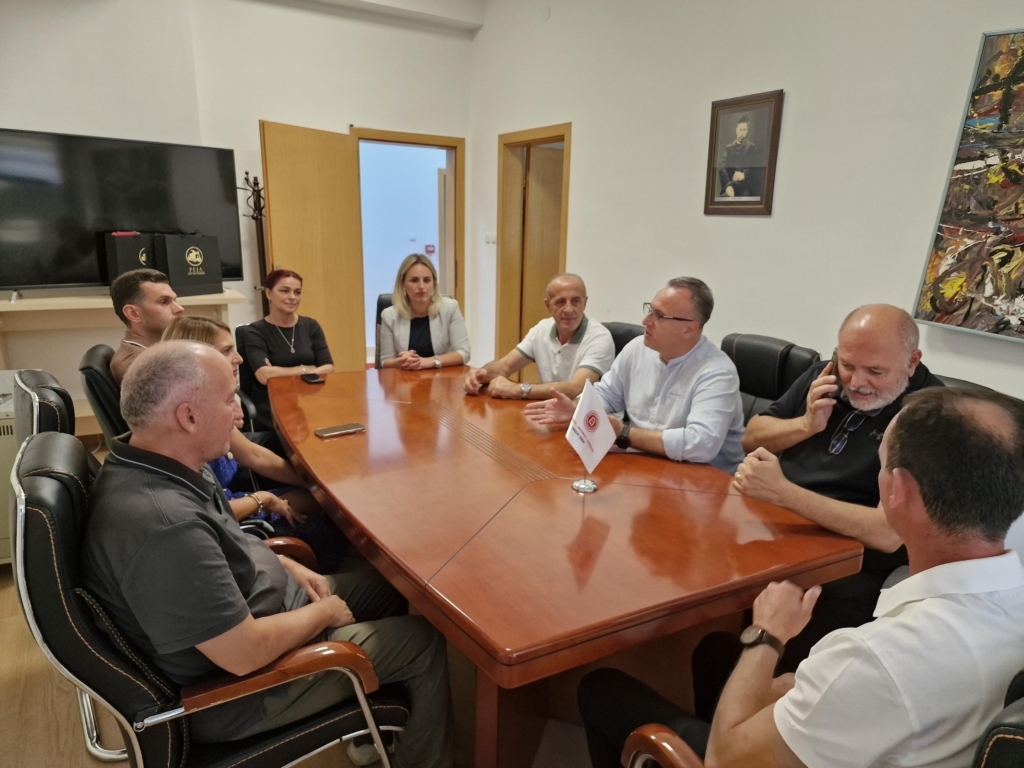 The management of “Haxhi Zeka” University had the pleasure today to welcome the Mayor of the Municipality of Peja, Mr. Gazmend Muhaxheri, accompanied by Deputy Mayor Mr. Fatmir Asllani, the Chairperson of the Municipal Assembly Mr. Rexhep Kurbogaj, the Director of the Department for Culture, Youth, and Sports Ms. Xhenet Syka, and the Director of the Department for Education Mr. Naser Gega.