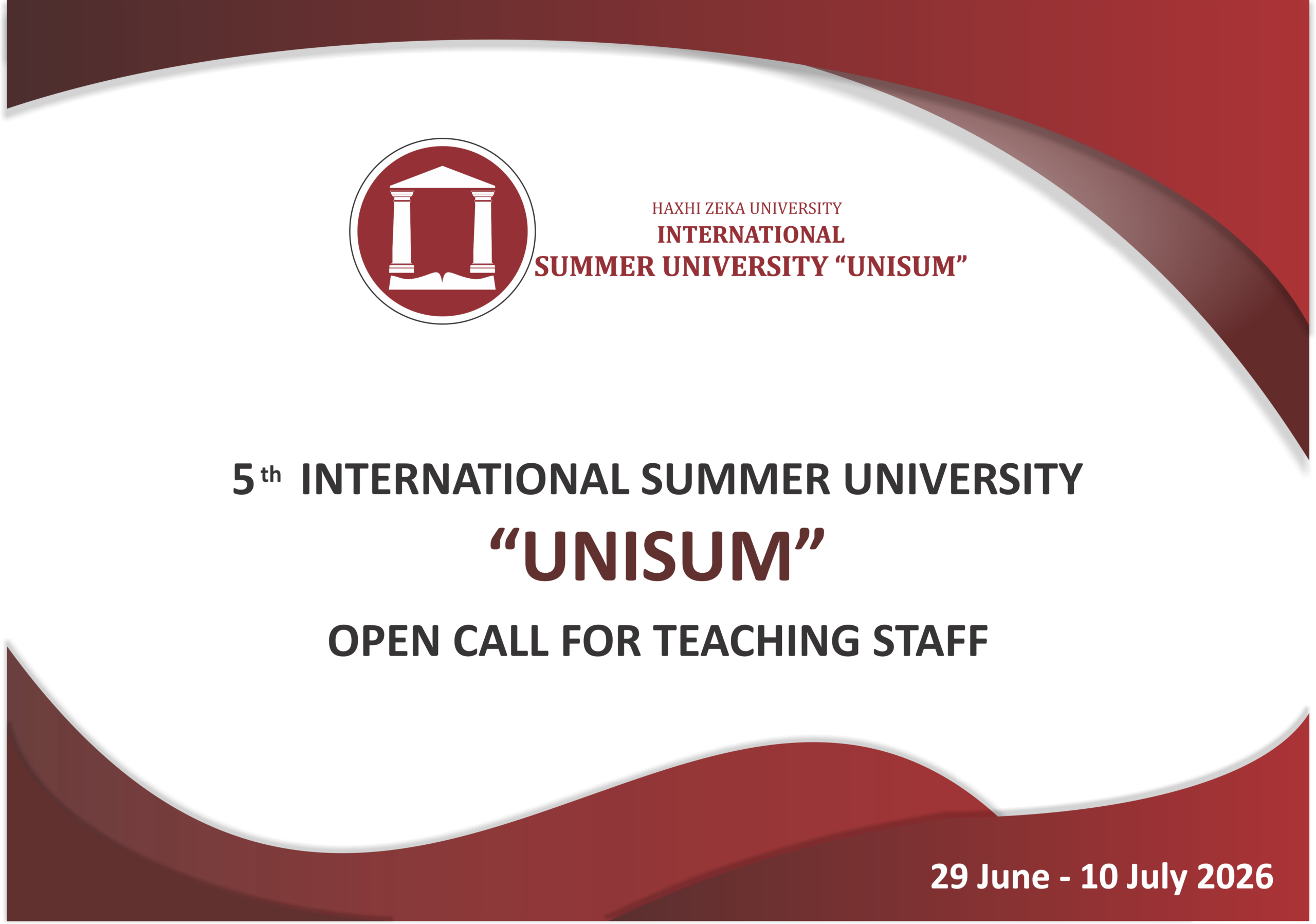 The 5th edition of the International Summer University “UNISUM” is organized by the University “Haxhi Zeka” in Peja (www.unhz.eu). The primary goal of this event is to promote international collaboration with universities across national, regional, and global levels, fostering opportunities for advancement in both research and education.