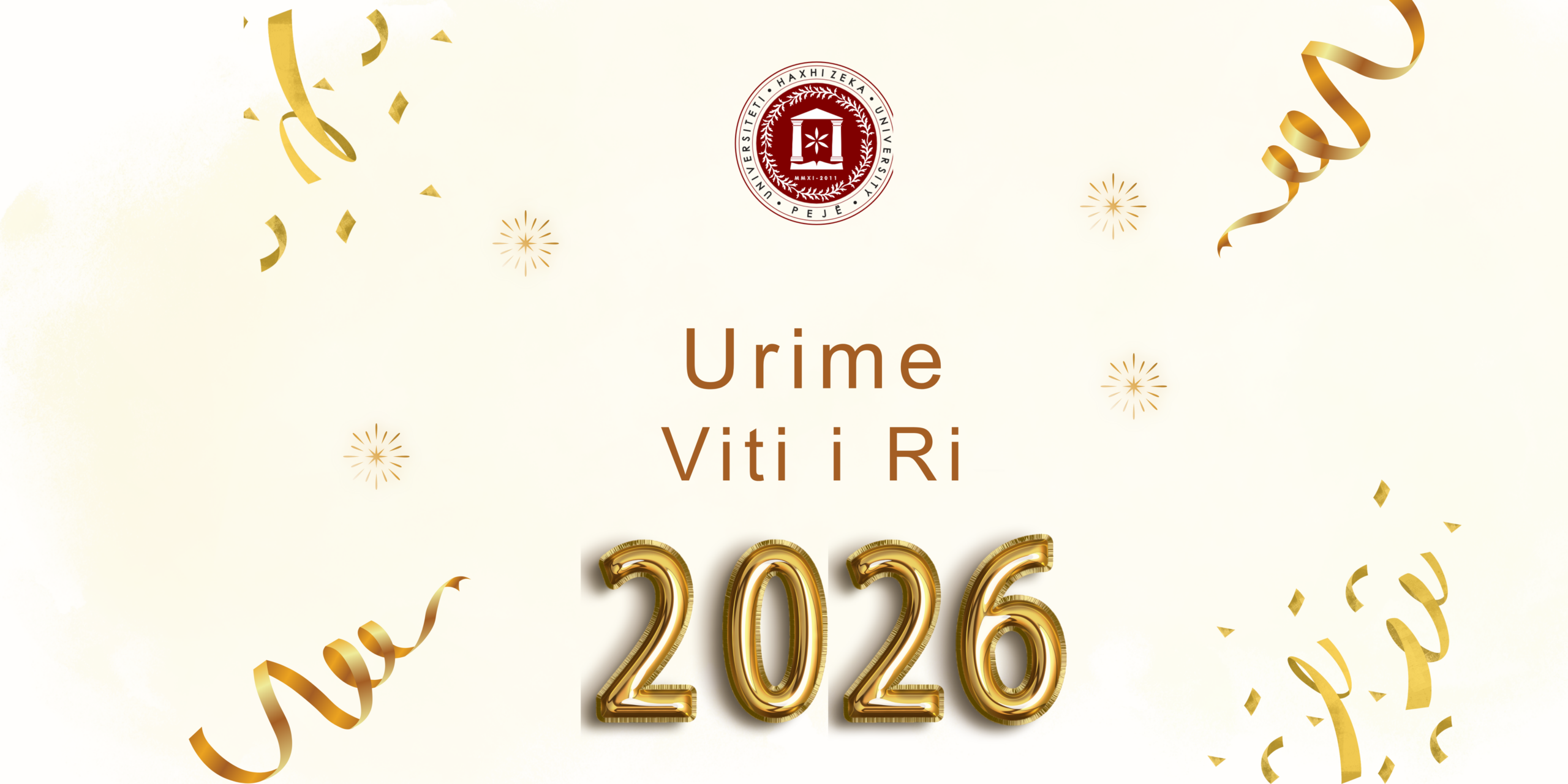 Në natën e ndërrimit të moteve, Universiteti “Haxhi Zeka” ju drejton një urim të përzemërt dhe të sinqertë për Vitin e Ri, duke shprehur mirënjohje të thellë për të gjithë ata që kanë qenë dhe mbeten pjesë e rrugëtimit tonë të përbashkët: studentët tanë, ish-studentët – alumnin, personelin akademik dhe administrativ, partnerët vendor e ndërkombëtar si dhe qytetarët që gjithmonë kanë besuar në vizionin, misionin dhe zhvillimin e universitetit tonë.